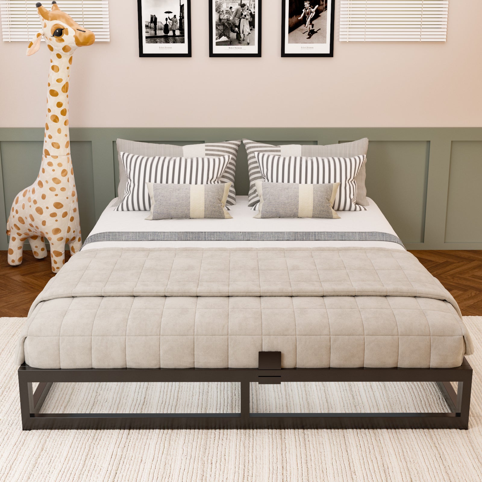 California King Bed Frame with Steel Slat Support, Low Profile King Metal Platform Bed Frame Support Mattress Foundation, No Box Spring Needed/Easy Assembly/Noise Free