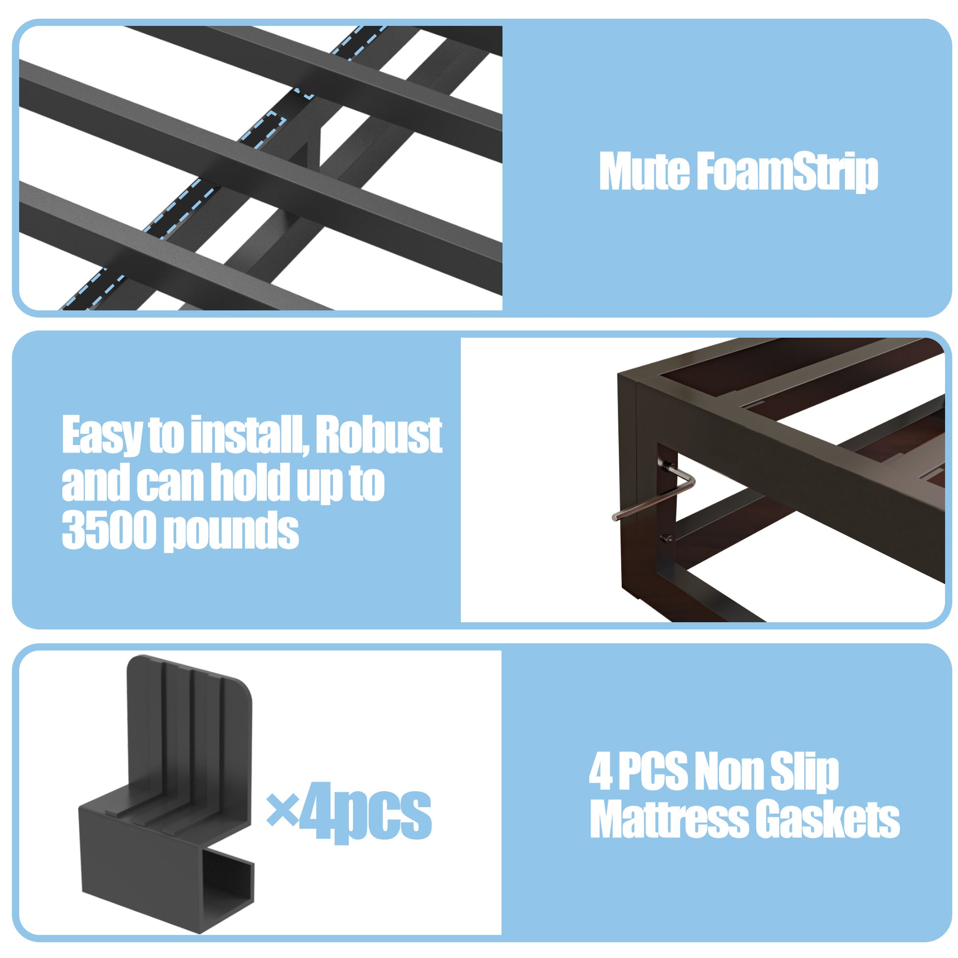 - 【 Anti-bending Design Without Folding 】 :The bed frame features a collapseless design and robust steel structural support that can hold up to 3,500 pounds without deformation. Compared to most products on the market, it can effectively prevent bending due to insufficient load capacity, and does not produce a collision sound.