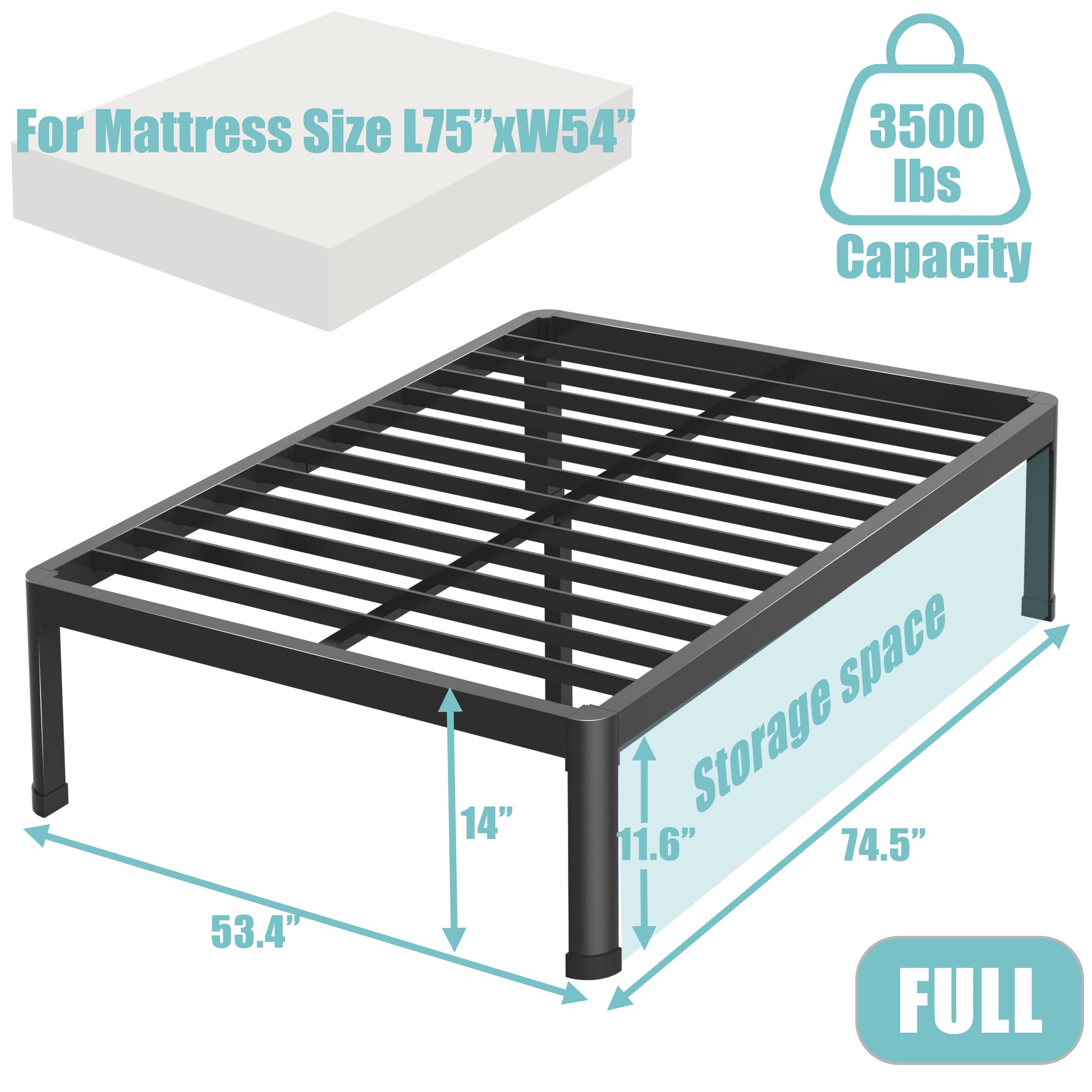 - 【Heavy Duty Bed Frame】The full bed frame is made of alloy steel with reinforced structure. It won't shake or creak when you lie down to rest on it. The maximum weight-bearing capacity of the bed frame is up to 3500 lbs.