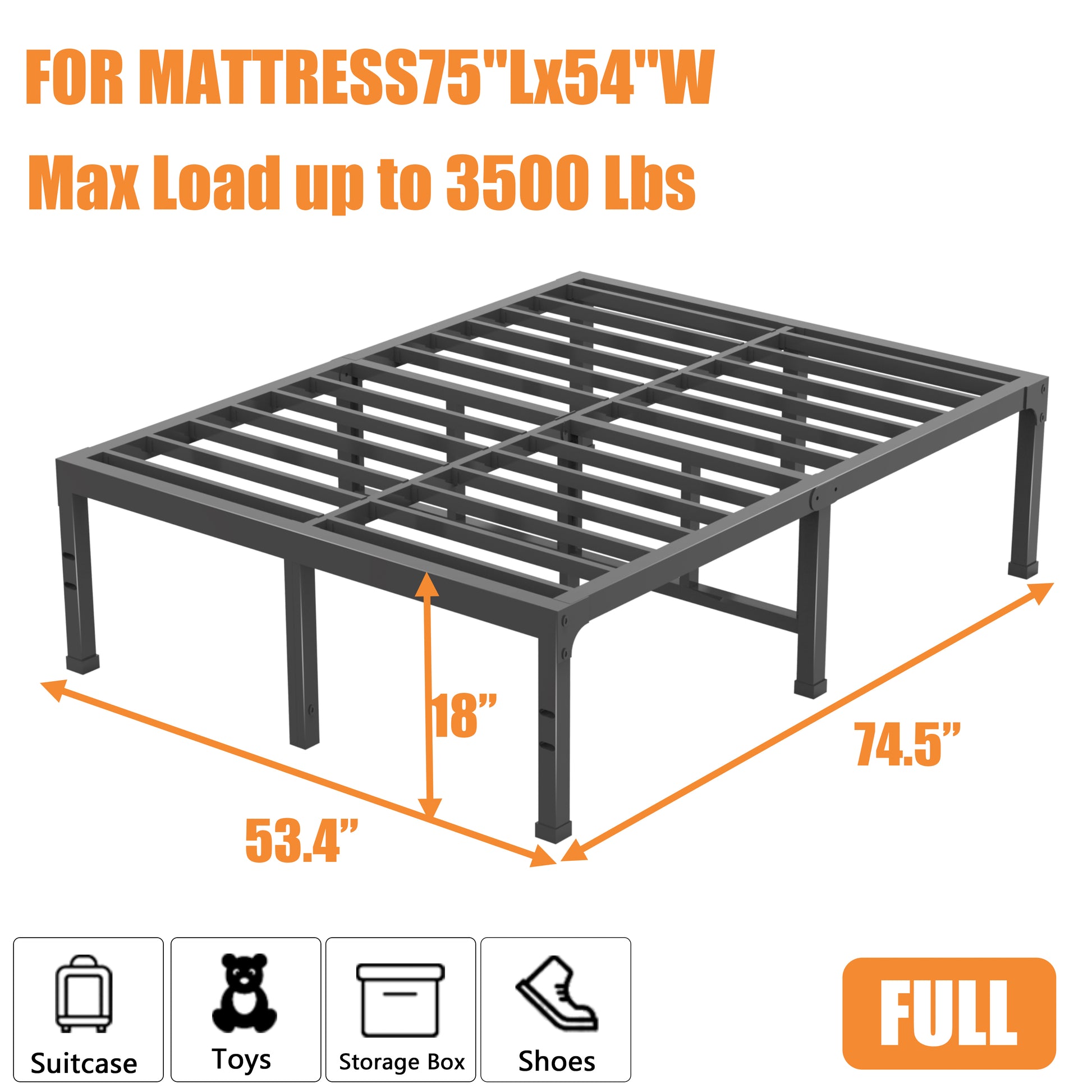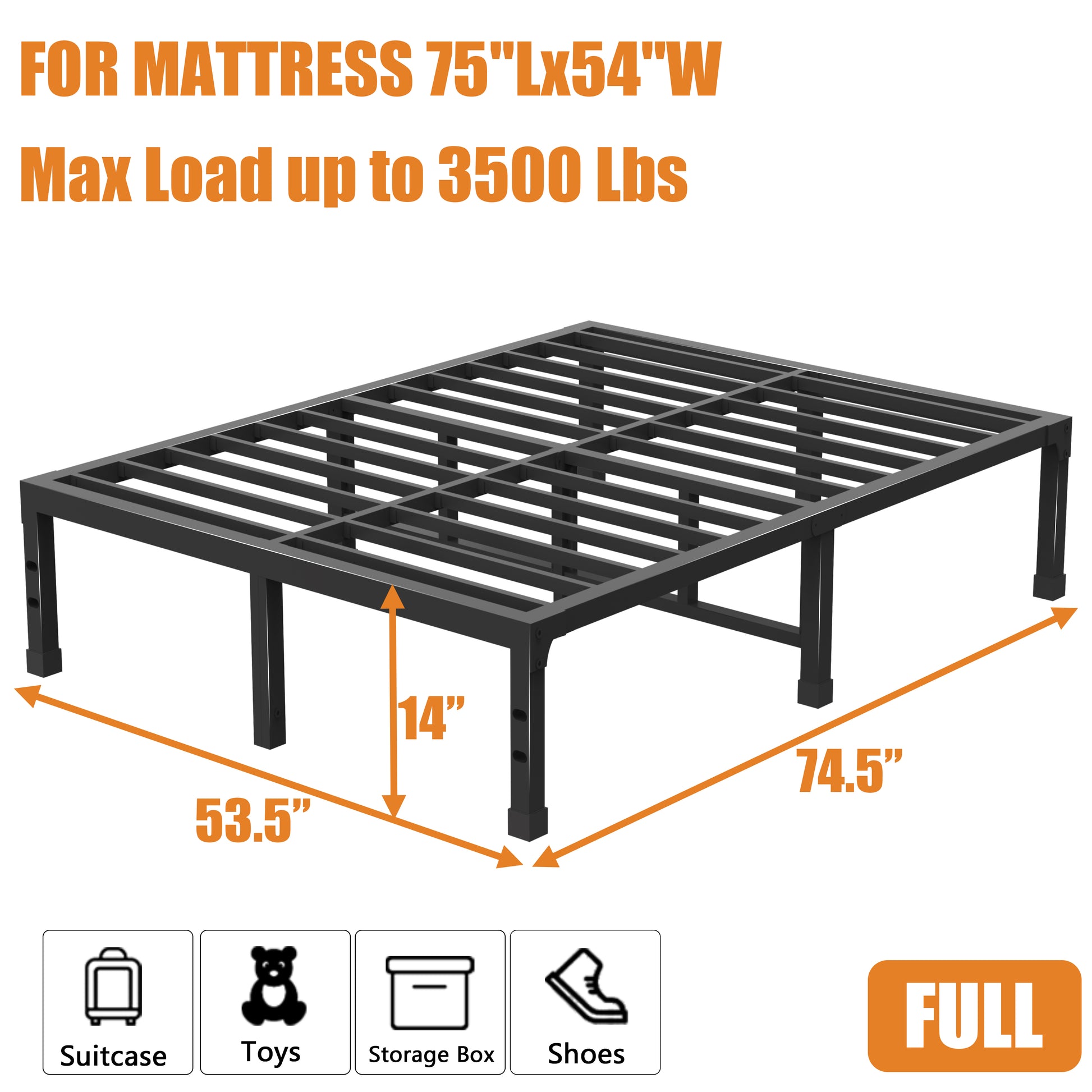 Full Size Bed Frame, 14/18 Inch Heavy Duty Metal Platform Bed Frame Full Support Up to 3500 lbs, No Box Spring Needed/No Shaking/Steel Slat Support/Noise Free/Easy Assembly